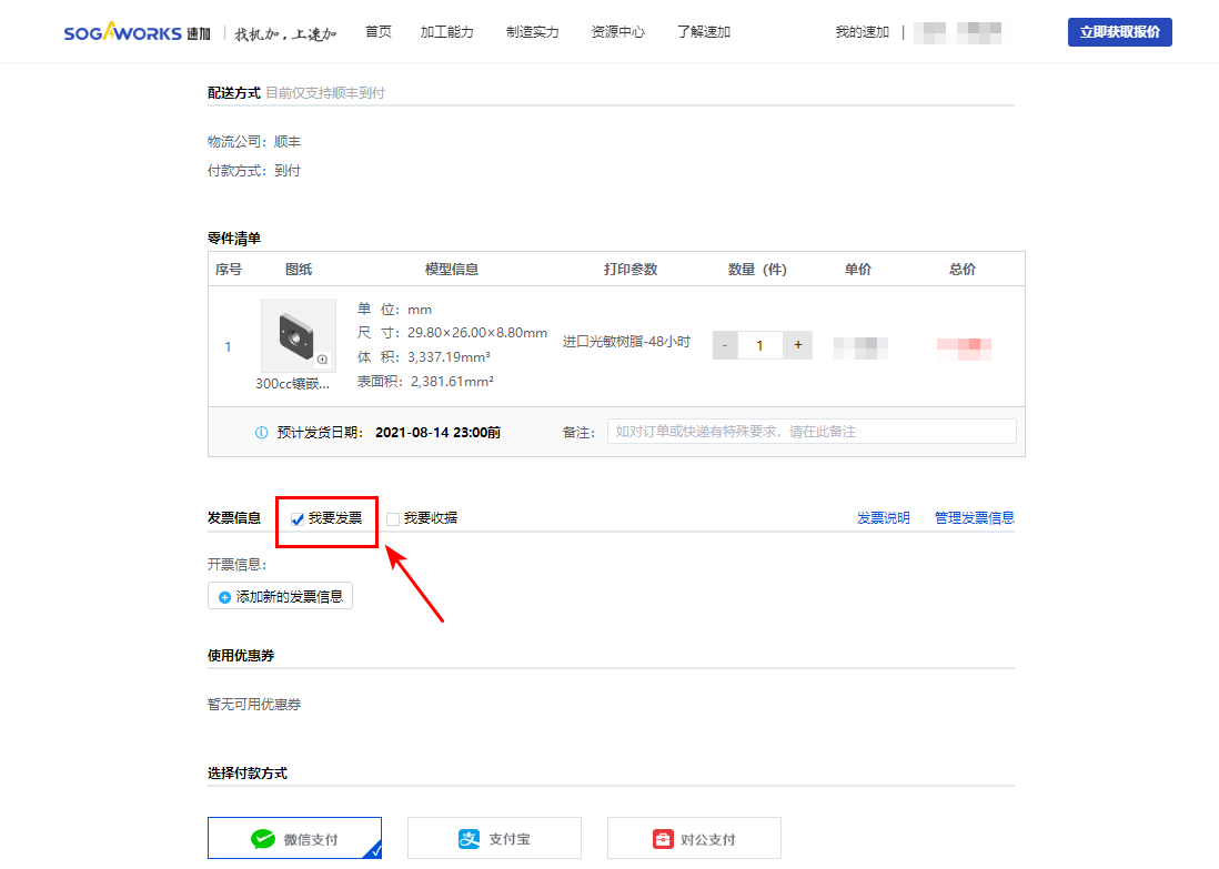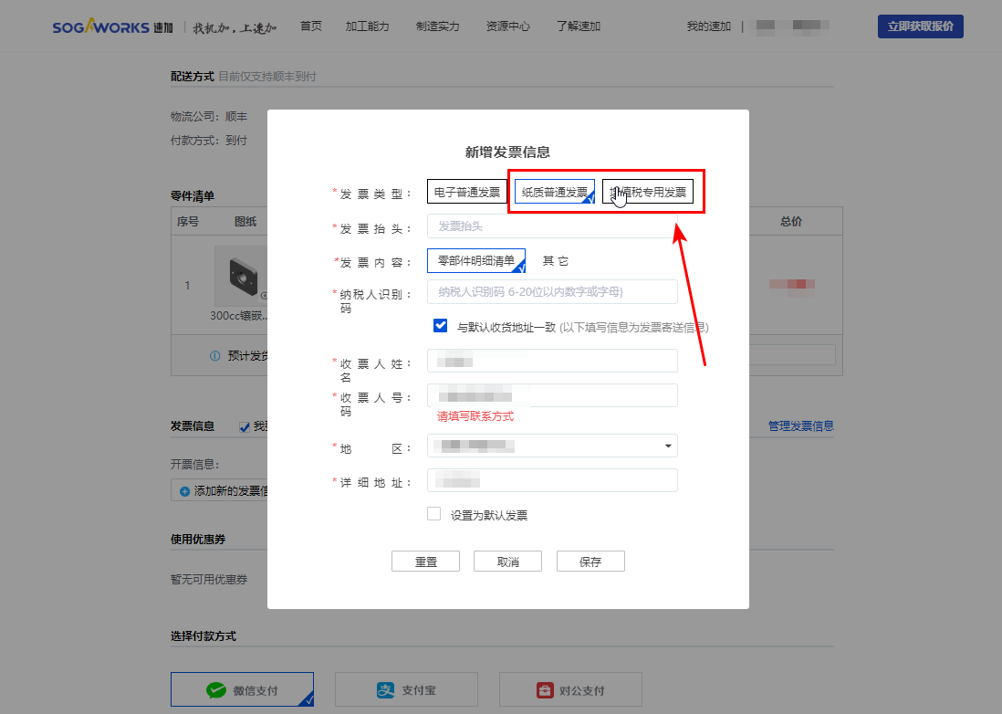 速加支持開具紙質(zhì)發(fā)票和電子發(fā)票。紙質(zhì)發(fā)票可隨貨郵寄給您,也可以單獨(dú)郵寄給您。您可在傳統(tǒng)詢價(jià)時(shí)選擇相應(yīng)的發(fā)票方式。