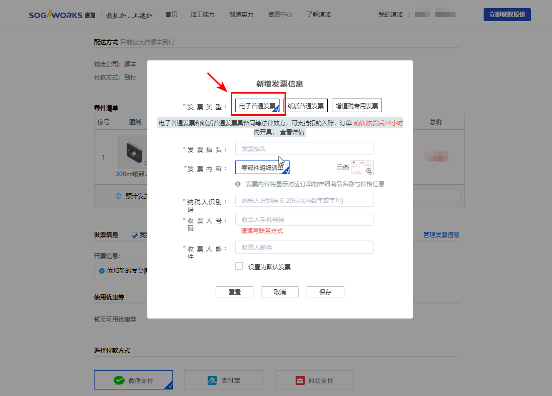 6.1 如您勾選【電子普通發(fā)票】,則速加默認(rèn)為您開電子發(fā)票,電子發(fā)票您可在后臺(tái)下載